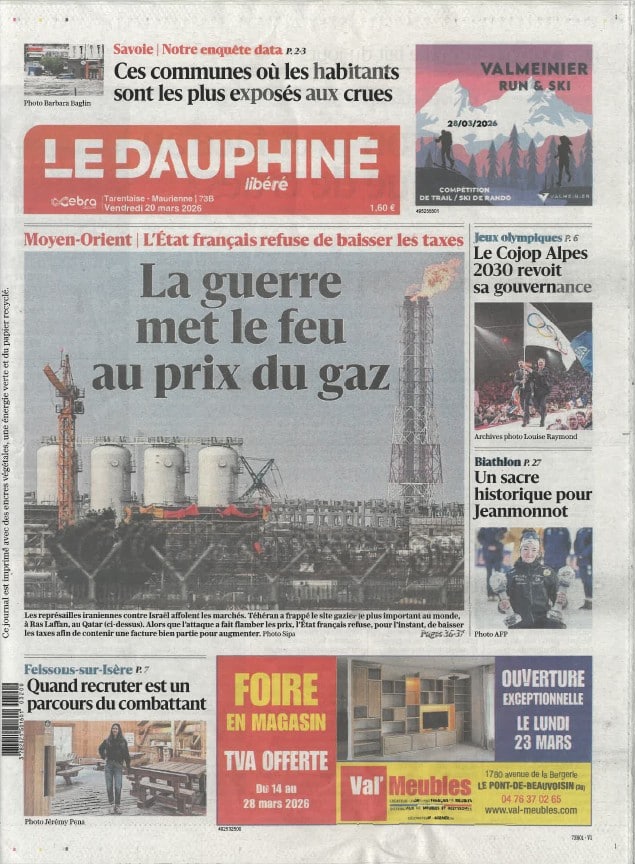 Nous avons fait la couverture du Dauphiné du 20 mars 2026 😀